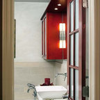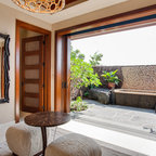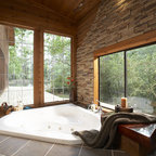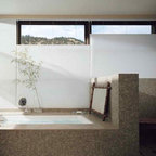 Love the adjoining tub/shower and the waterfall into the tub and the tranquil feeling I get looking at this design. Tub would need a full length step...