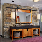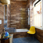 Although it’s only a tiny corner of this photo, I like the pebbles as the base of the shower floor.
